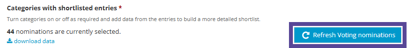 Refreshing Shortlist Nominations will reset your nomination name back to how it appears in the original category. Any edits made to your nomination names will be lost. All other content remains untouched, even if updated in the original category.