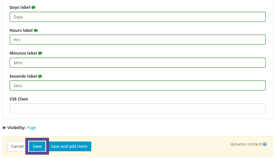 If you would like to replace them with alternative labels, e.g. Days, Hrs, Mins, Secs, enter the new labels into the corresponding boxes.