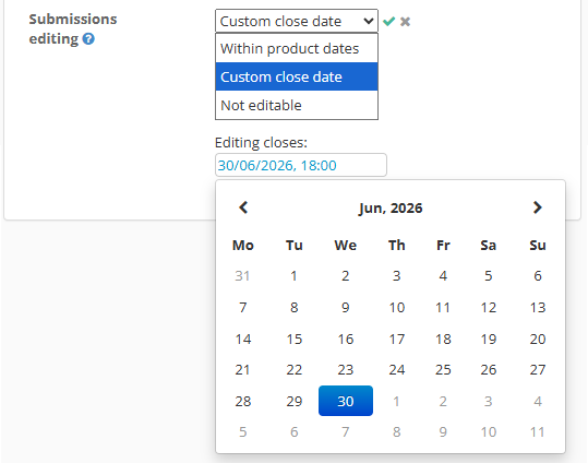 | Custom close Date | Select a different date that submissions can be edited until, i.e. if your venue needs guest information 7 days before your event, you can lock submission editing so guest requirements are not changed by the user. |