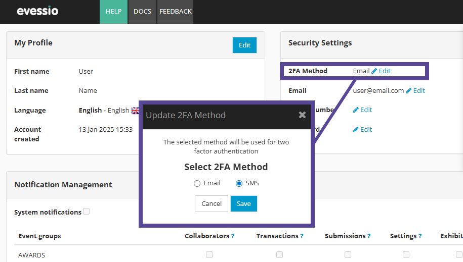 Once your phone number has been added, you can then amend your 2FA Method from email to SMS.