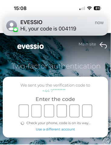 If you prefer to receive your authentication code via SMS, you can activate this on your Evessio account.