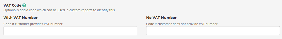 VAT codes can be added for reporting purposes to identify the VAT zone, and whether or not the customer has provided a VAT number.