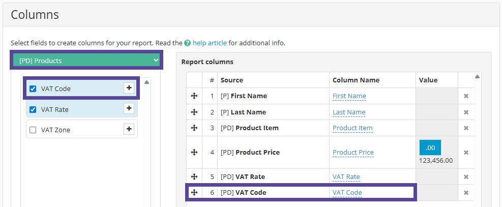 Once VAT codes have been set up, you can choose to include this field in your Custom Reports.