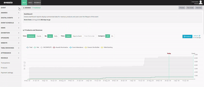 This Dashboard provides powerful insights into how users progress through your event, from initial registration through to completed transactions, helps you understand user behaviour, identify conversion bottlenecks, and optimise the onboarding experience.